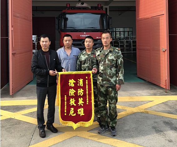 10月26日下午,福建煜升超纖有限公司相關(guān)負(fù)責(zé)人專(zhuān)程來(lái)到公司專(zhuān)職消防隊(duì),感謝專(zhuān)職消防隊(duì)員在撲救該公司廠房火災(zāi)中的英勇行為,將該廠的損失降低到最低。為感謝公司消防隊(duì)此次的援救行動(dòng),將印有"搶險(xiǎn)救危,消防英雄"字樣的錦旗送到消防隊(duì),借以向辛勤奮戰(zhàn)在滅火第一線的全體專(zhuān)職消防隊(duì)員表示崇高的敬意。